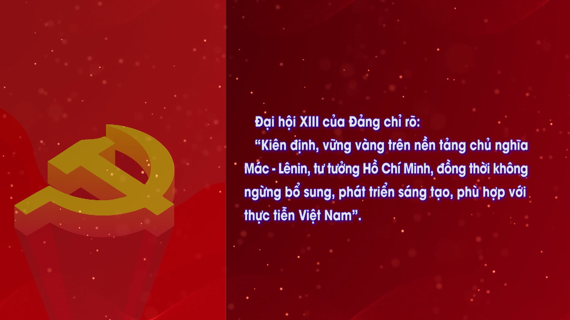Trên nền tảng kiên định chủ nghĩa Mác – Lênin, tư tưởng Hồ Chí Minh, Đảng Cộng sản Việt Nam vận dụng, phát triển hết sức sáng tạo vào điều kiện thực tiễn của Việt Nam. Đảng đề ra mô hình Chủ nghĩa xã hội Việt Nam với tám đặc trưng là “Dân giàu, nước mạnh, dân chủ, công bằng, văn minh”.