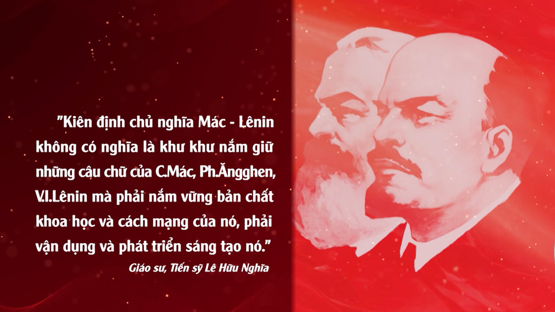 Giáo sư, Tiến sỹ Lê Hữu Nghĩa khẳng định: “Trong thời đại ngày nay, chủ nghĩa Mác – Lênin vẫn là học thuyết khoa học và cách mạng duy nhất đáp ứng được nhiệm vụ lịch sử mà không một học thuyết nào có thể thay thế được. Sức sống của chủ nghĩa Mác – Lênin được thể hiện ở chỗ: nó soi sáng các nhiệm vụ lịch sử của nhân loại, nhiệm vụ giải phóng con người khỏi mọi hình thức áp bức, bóc lột, bất công, tha hóa.”