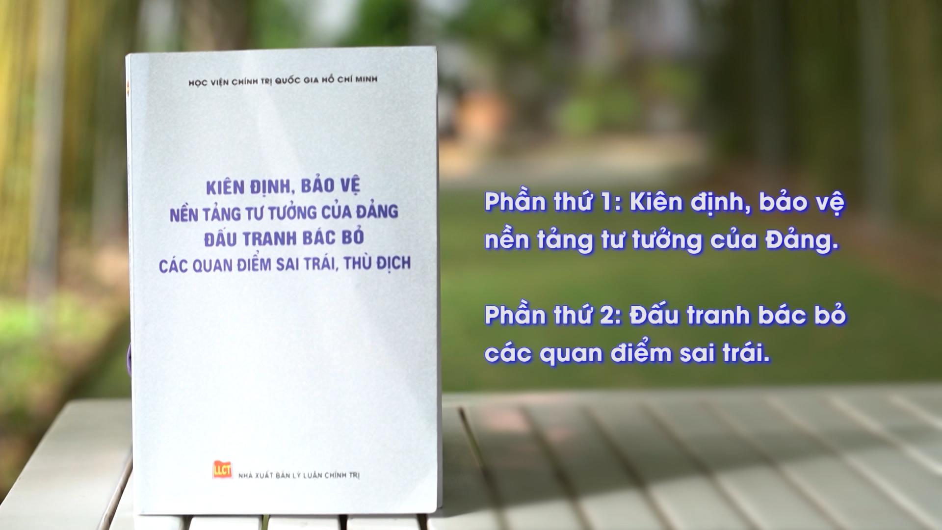 Để nâng cao hiệu quả công tác tuyên truyền, Nhà xuất bản Lý luận Chính trị, Học viện Chính trị Quốc gia Hồ Chí Minh ra mắt Quyển sách Kiên định, bảo vệ nền tảng tư tưởng của Đảng, đấu tranh bác bỏ các quan điểm sai trái, thù địch. Tư liệu phục vụ cho việc học tập, nghiên cứu của cán bộ, Đảng viên và người dân.