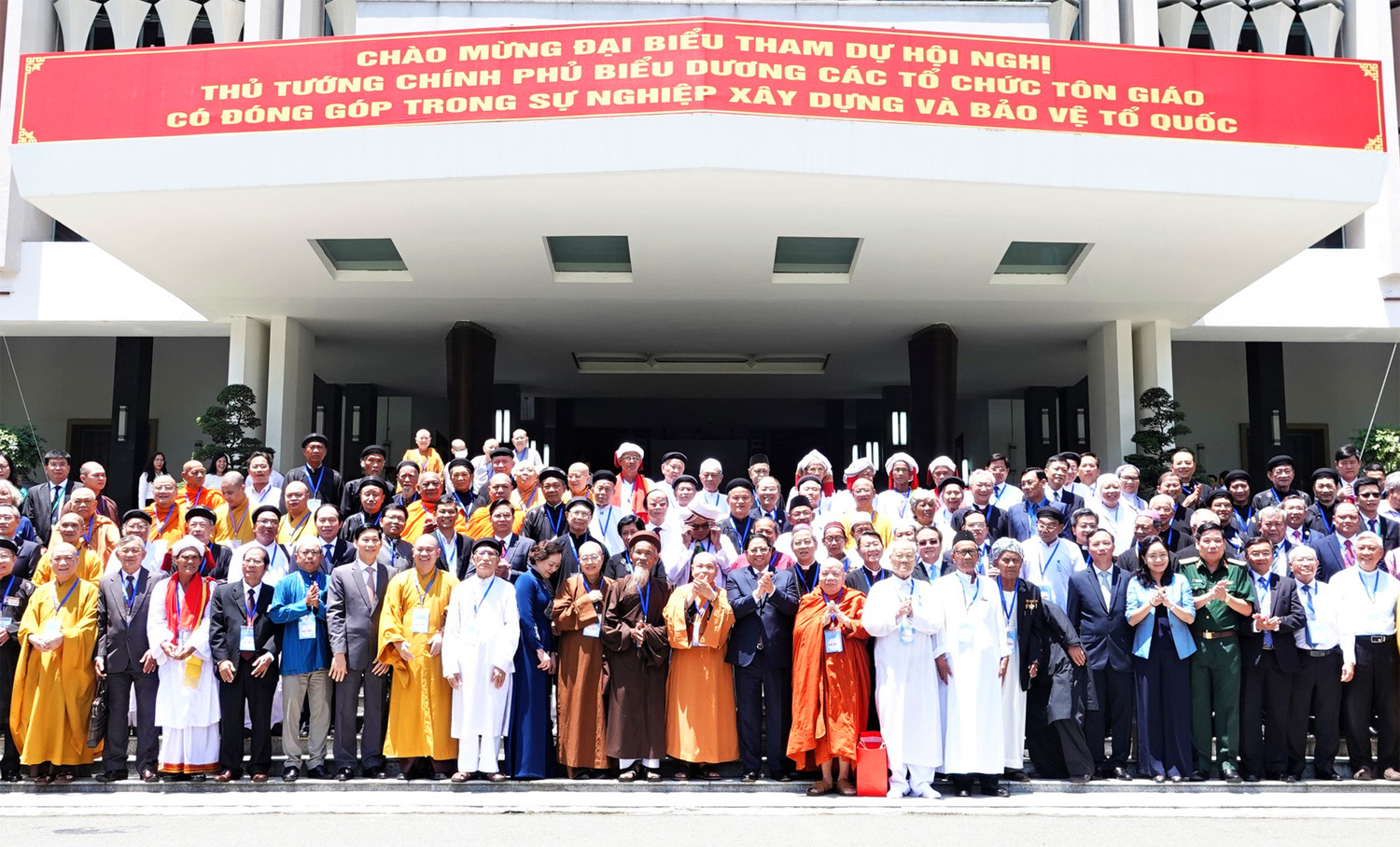 Không thể phủ nhận sự tôn trọng và bảo đảm quyền tự do tín ngưỡng, tôn giáo ở Việt Nam (Trong ảnh: Ủy viên Bộ Chính trị, Thủ tướng Chính phủ Phạm Minh Chính với các chức sắc và đại diện các tổ chức tôn giáo tham dự Hội nghị biểu dương các tổ chức tôn giáo có đóng góp trong sự nghiệp xây dựng và bảo vệ Tổ quốc). Ảnh: TTXVN
